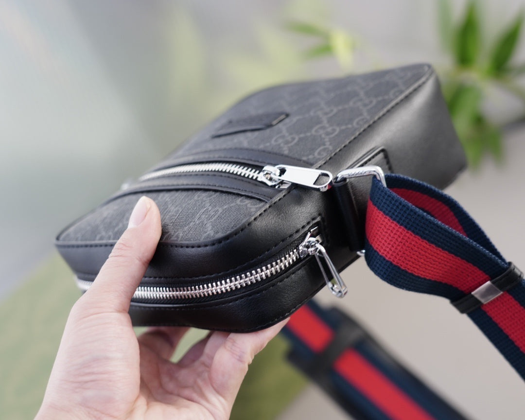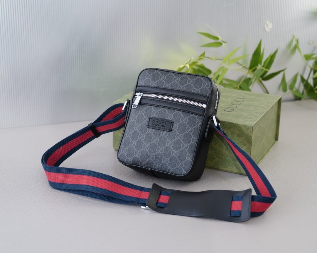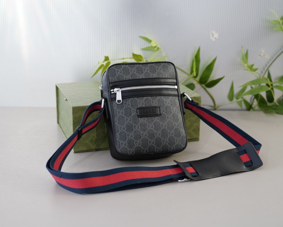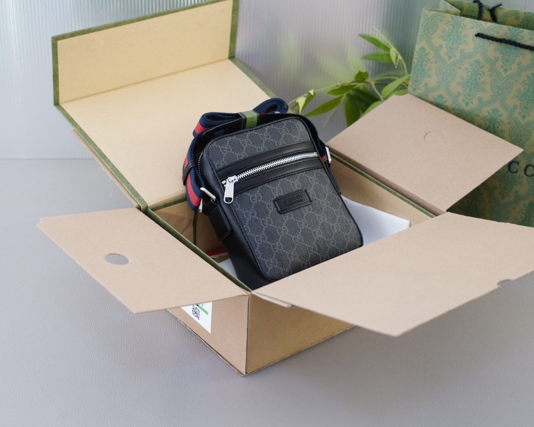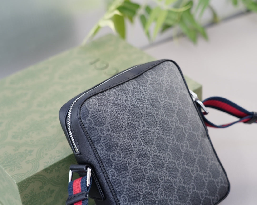 Un clásico contemporáneo que combina el diseño icónico de Gucci con un estilo urbano sofisticado. Este bolso cruzado en lona GG Supreme color gris oscuro destaca por su funcionalidad, detalles elegantes y una correa ajustable en los colores característicos de la marca.