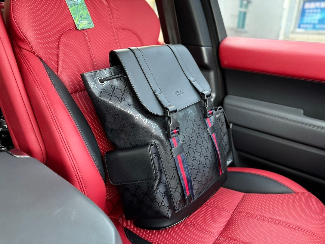 Mochila Gucci GG Supreme Negra con Detalles Web